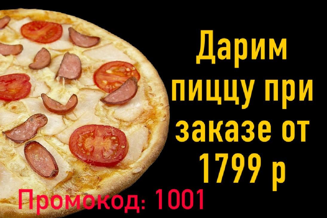 Дарим пиццу Барбекю при заказе от 1799 р. Промокод: 1001. Можно использовать только на доставку либо самовывоз
