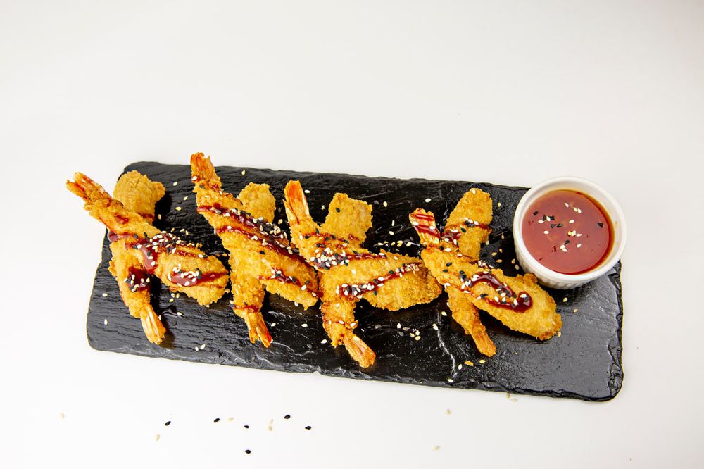 Тигровая креветка в сухарях панко, подается с соусом свит чили