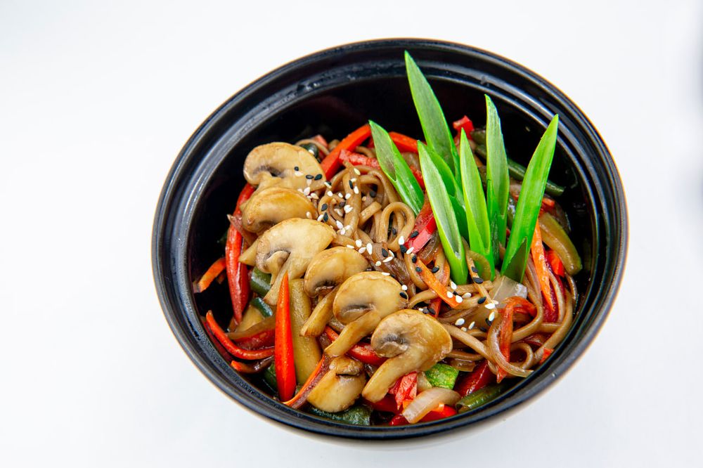 Гречневая лапша с овощами и соусом на выбор